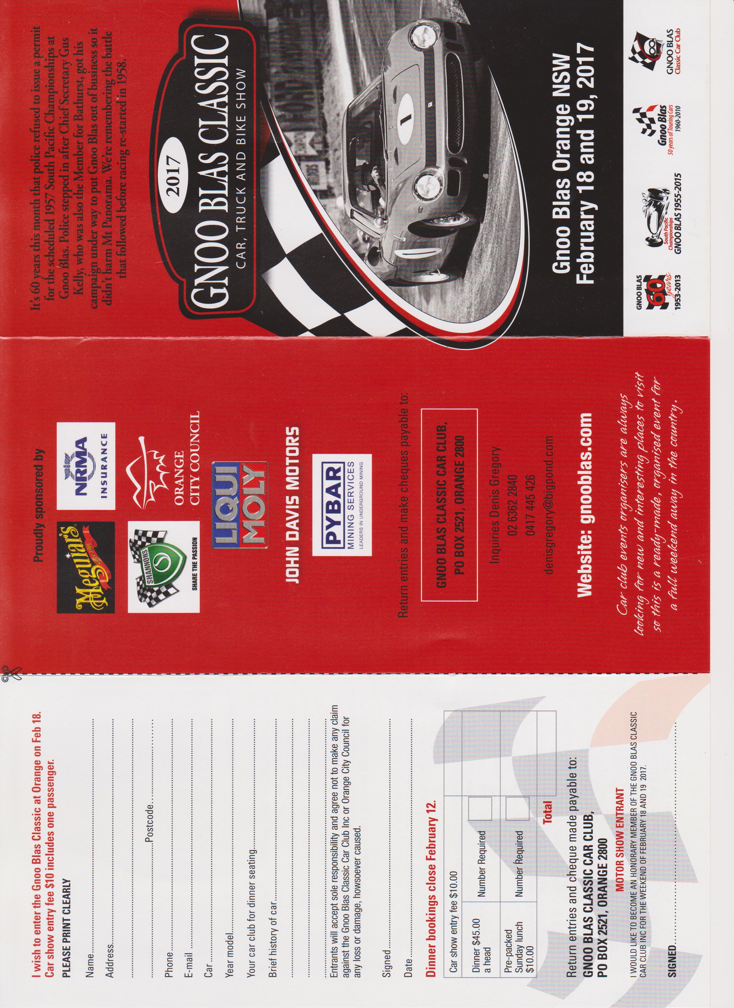 Here we are again, Entry Form for the Gnoo Blas Classic Car Show 2017 February Event! This year we slayed em, with our Club Display taking out the trophy for Best Club Display, wouldn't it be great to knock that title off again, 2 years in succession.