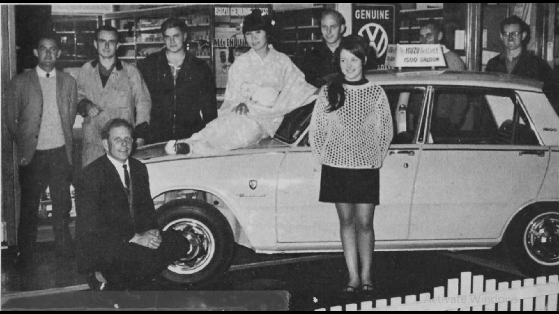 Looking back at the history of the bellett deluxe in NZ "MISS IZUZU IN TOWN Miss Masato Saka, a Japanese girl who recently visited our city to promote the sale of the Izuzu car, is shown here with the staff of the local dealers, Taranaki Motors."