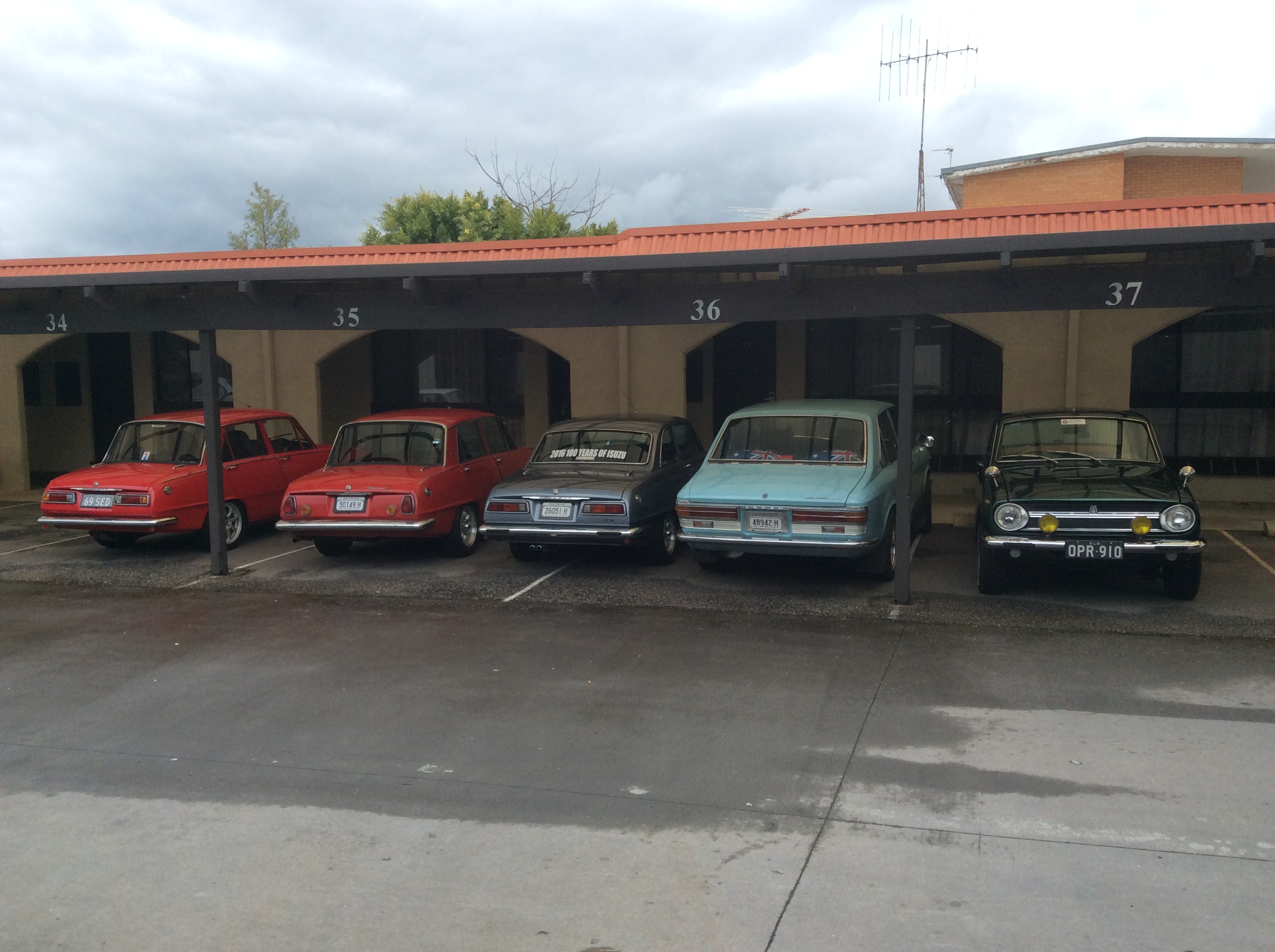 Car(s): Doris, AuntyMary, Shrek, Jimmy; GT, Wasp, Flo & Sed unrestos; 65 Elf; 82 Rodeo, 60 TX550, 72 Sport, & a Sigma.