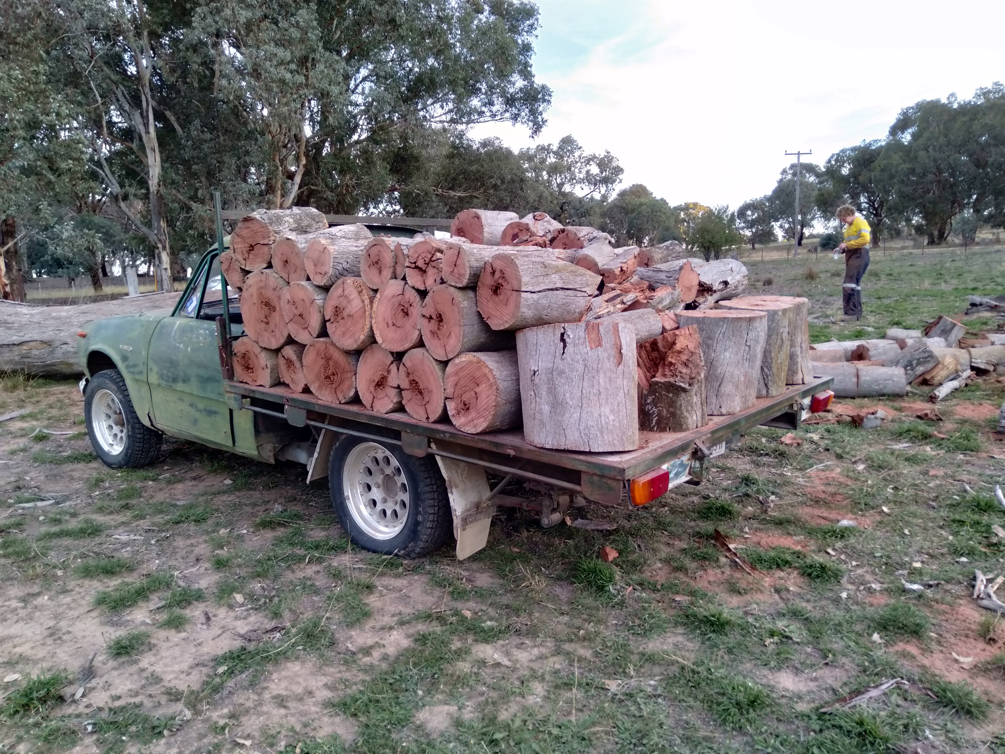 It's a pretty substantial tree Dave, as you can see the trunk is taller than the Wasps bonnet. We were 3 hours with 2 saws and 5 litres of fuel and still not into the trunk. There is at least a Winter's wood there. We cut a small dead one too, there 2 month's heat there! And a big old fallen yellow box branch which has been down over 25 years. We'll have to split it up to let it dry out, but there's a couple of months burning there in a year or two. Productive day! Cheers, Matt.