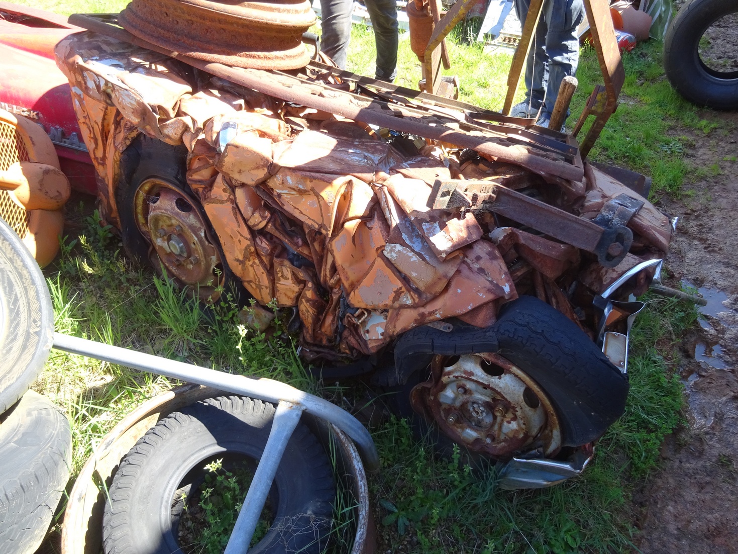 OK OK here are some pics from Russel's place He had stuff everywhere, in sheds, in paddocks, in containers, under tarps and even in gardens. The very first thing I spotted was this garden Beetle. It is my absolute favorite model Beetle and one I tried to find for myself years ago when I had them, before Donkey came into my life. It's a 59 Beetle, the last model with the semaphores, first of the bay windows (first after the ovals) Attachment: