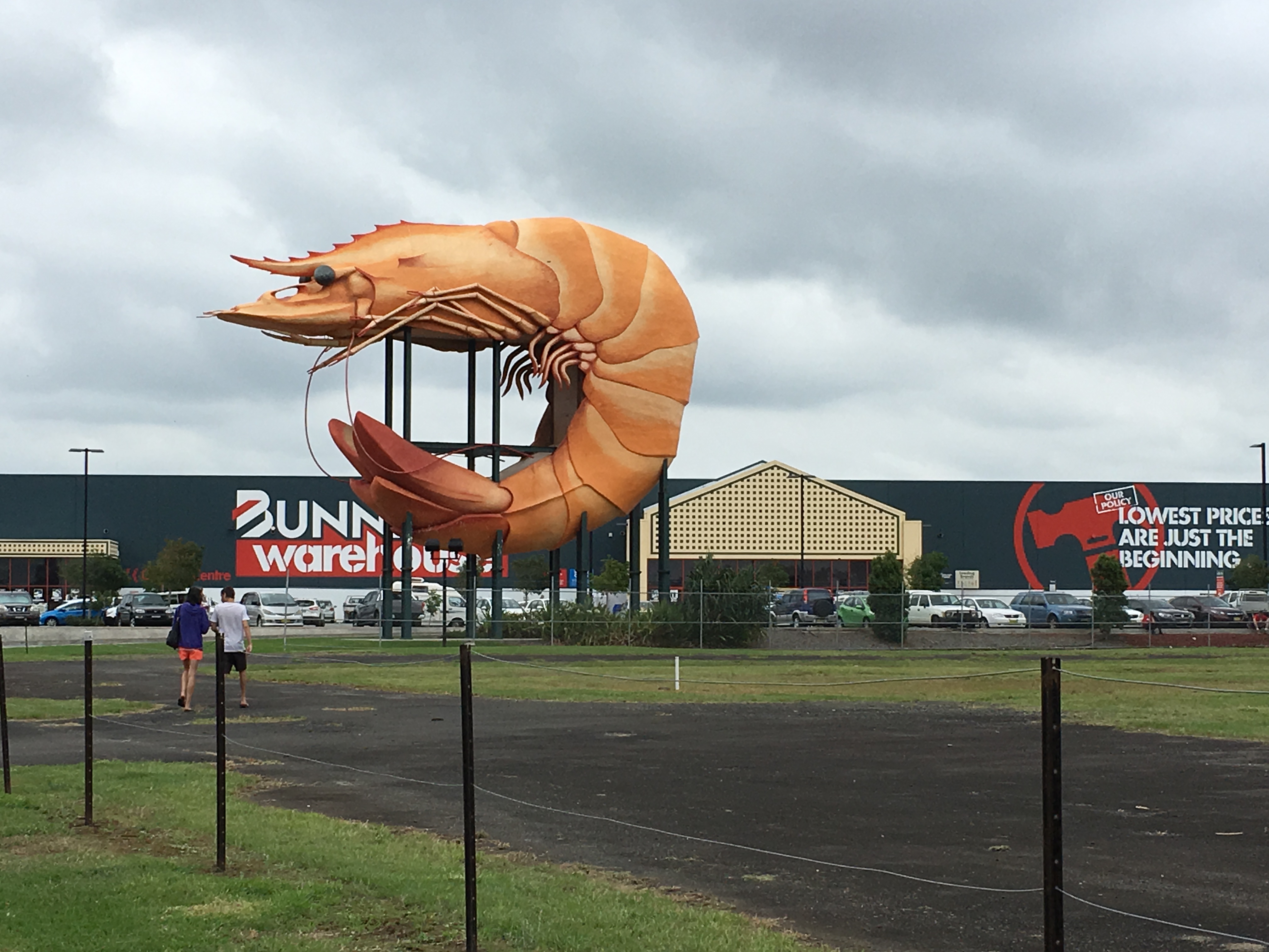 I left the Gold Coast this morning. No doggie send off this year as they had already gone off to spend the day with Donna playing at Canine Cubby. So i put my new Subie to bed for the week and headed down the highway. I got to Ballina and thought this big prawn who's hiding a big Bunnings store is telling me to go a different way. So I headed inland through Lismore and Casino connecting onto the summer land way. What a beautiful drive, mostly flat and scenic before arriving at Grafton into peak hour traffic. Back onto the PAC hwy through lots of roadworks and Fast sections before arriving at my aunty's place in North Haven tonight.