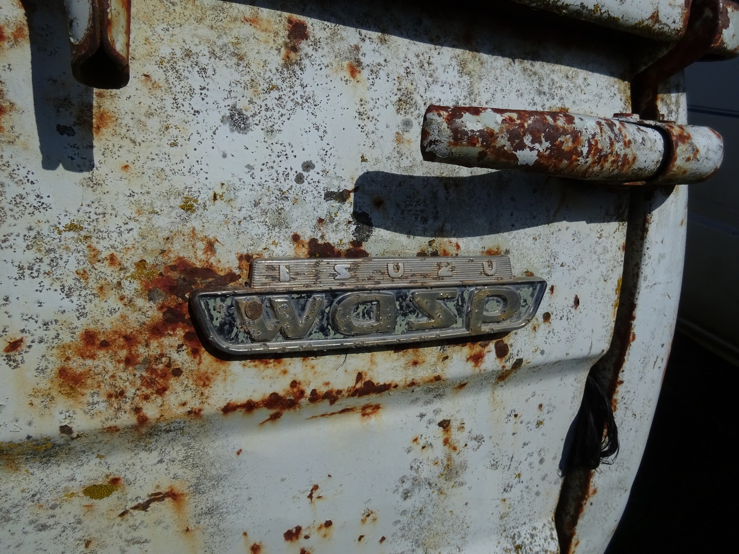 67GT wrote: Gee Sticky, I’d hate to be your “lady interest” . WHAT A TEASE No time for a lady interest mate...... too many cars  and besides, there's not enough room in Donkey Alrighty enough teasin' We met Russel in the main street at Bright , he used to own a wrecking yard there years ago. He stopped to check out Gricey's Florian as he'd never seen one before so we got to chatting. He knew what the Bellett's were and then said "I have a Wasp, the ute version of what you're driving, but I've never seen one of those Florian's before so had to stop and check it out" He then said "I know a bloke in Albury that has a heap of your Isuzu's" Cheryl was standing beside me at this point and said "that's us" Next thing Jim is along side us and organizing a tour for us through Russel's Aladdin's cave and paddock of wonder The Wasp was sold new in Bright and has never left the area (and if my impressions of Russel are correct..... it never will) It has had 3 previous owners to Russel and one of them had beat the tub guards out to fit bigger Landcruiser rims and tyres but...... it still has tail lights, reverse light, fuel cap, tub ID tag and it's tailgate badge The LH front guard was very beat up (would have to be very committed to fix it) and missing it's badge but the RH was fairly good and had it's badge in place. Drivers door a bit banged up too. Interior was all there as was orig motor and radiator. Motor turned over by hand and no reason it wouldn't fire up with a few little thing reconnected. It is BEAUTIFULBut check out the pics and assess it for yourself.....and sorry but NO!! there will be no specific contact information or location details for Russel given to anyone by me. His privacy request will be respected. So with no further adieu, here is Russel's Wasp in all it's wondrous glory Attachment: