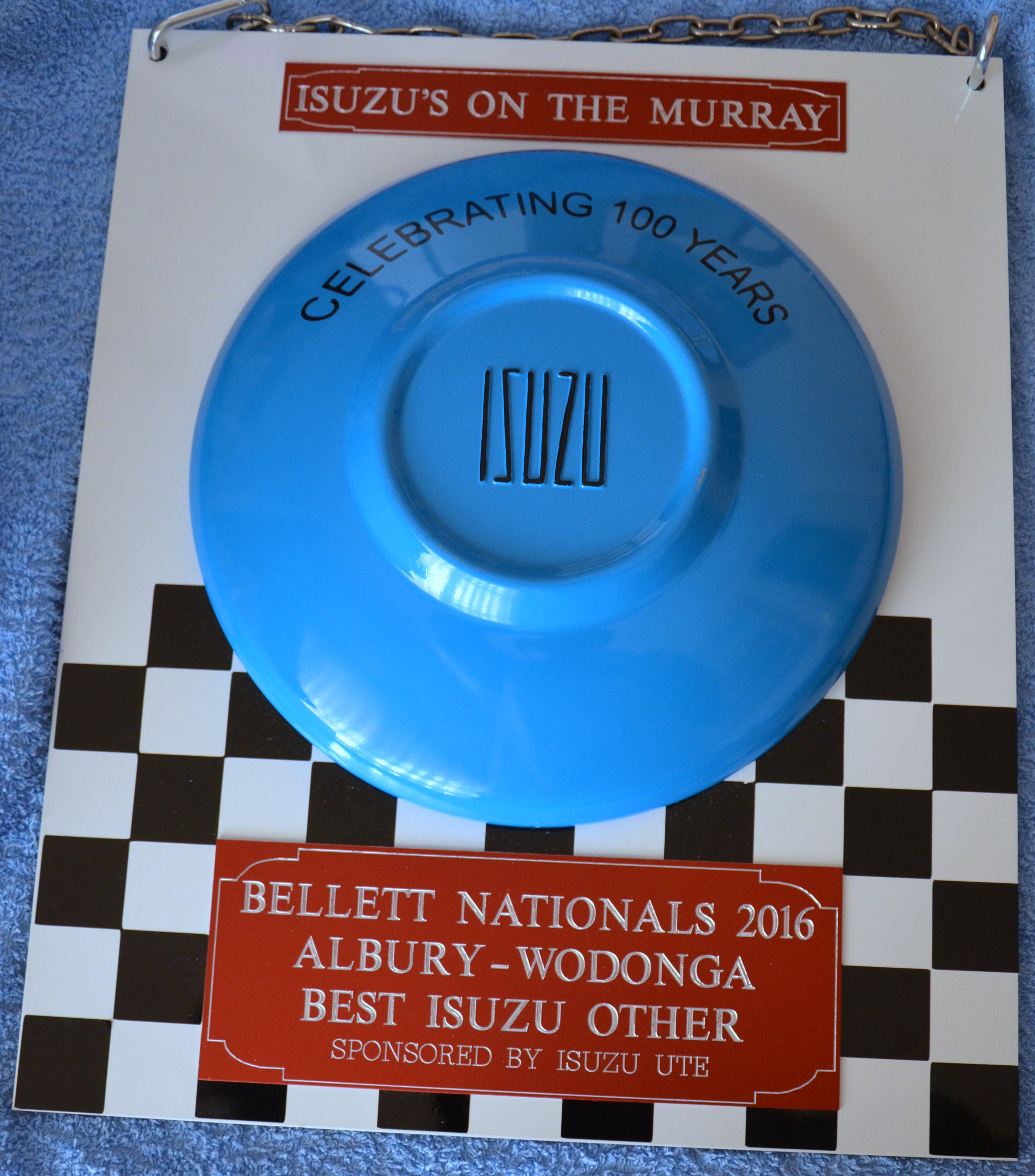 Albury 2016 - Best GT: Lewis Bolton. Runner Up GT: Dave Maurice. Best Sedan: Steve Thompson. Runner Up Sedan: Glen Potter. Best Other Isuzu: Peter Betyounan. Runner Up Other Isuzu: Dave Carey. People's Choice: James Darvas. Encouragement Award: Ross Smith. Spirit of the Nationals Award: Laurie Stanton. Siesta Resort Award: Paul Harvey. Blacklock's Isuzu Award: James Darvas.