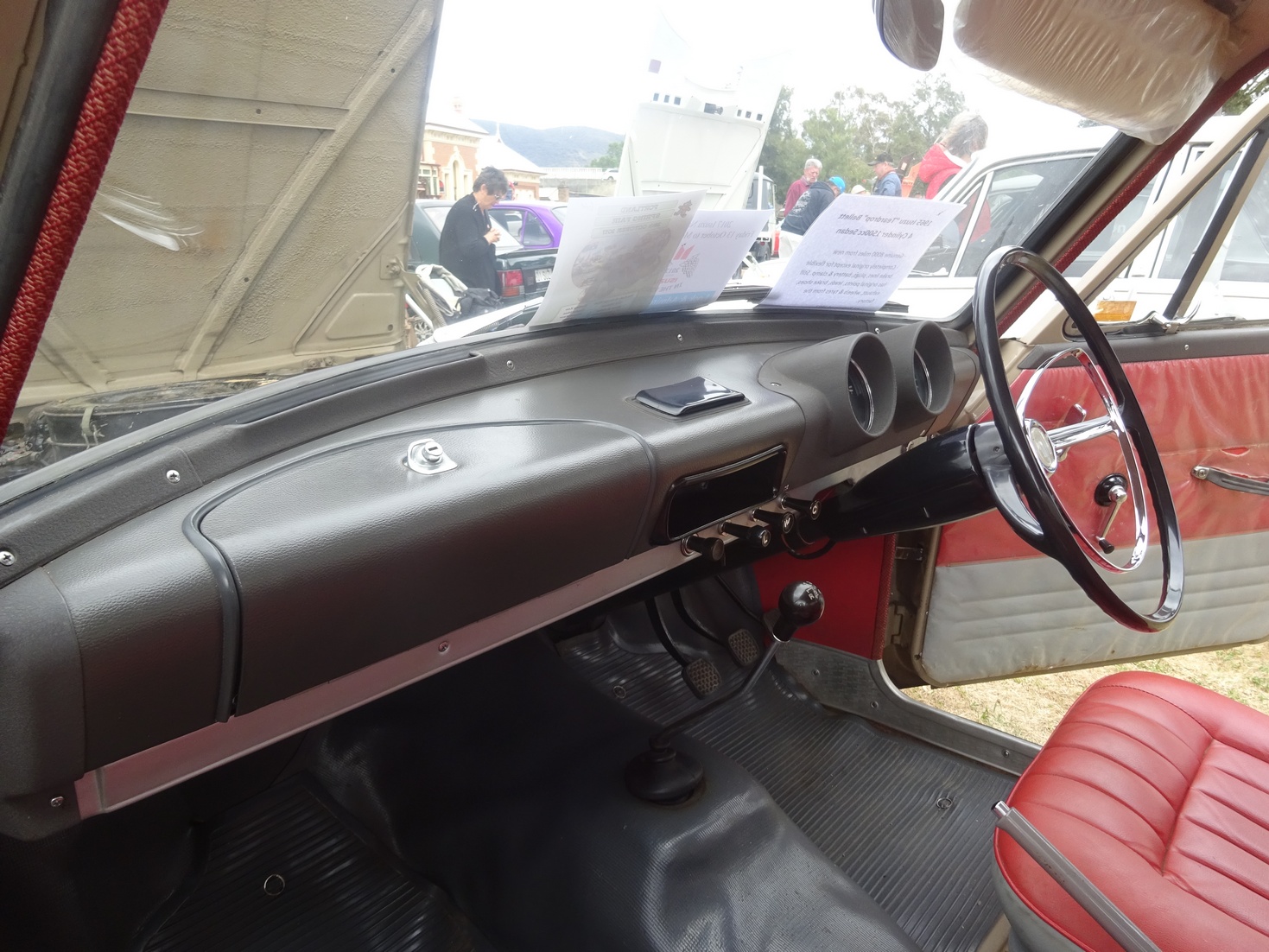 Well it seems I promised something I couldn't follow through with entirely..... I took a heap of pics yesterday as cars started to roll through the gates and people hugged and laughed, but it seems my trusty old camera wasn't on it's A game. The lens shutter wasn't fully opening (without me realizing) so every shot I took was 3/4's black and 1/4 fuzzy Today however at the show and shine it was opening  that is until the battery went flat half way through trophy presentations But I did get a bunch of pictures before that happened (inc some sneaky ones) so I will up some now for your viewing pleasure beginning with MY "People's Choice" selection  Attachment: