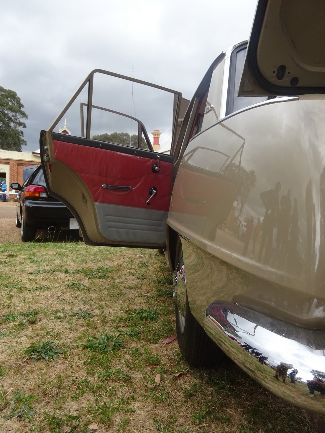 Well it seems I promised something I couldn't follow through with entirely..... I took a heap of pics yesterday as cars started to roll through the gates and people hugged and laughed, but it seems my trusty old camera wasn't on it's A game. The lens shutter wasn't fully opening (without me realizing) so every shot I took was 3/4's black and 1/4 fuzzy Today however at the show and shine it was opening  that is until the battery went flat half way through trophy presentations But I did get a bunch of pictures before that happened (inc some sneaky ones) so I will up some now for your viewing pleasure beginning with MY "People's Choice" selection  Attachment: