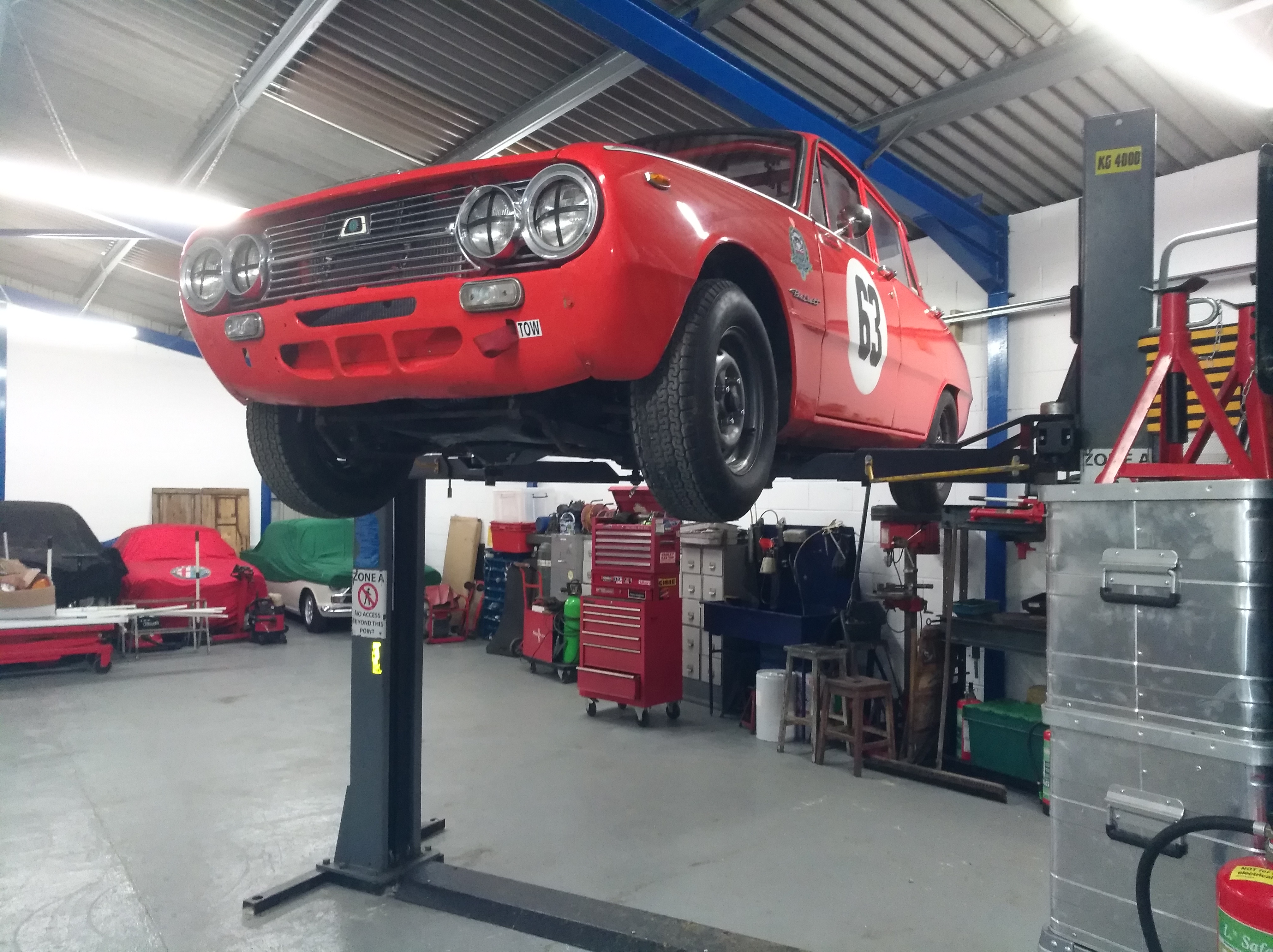 Rolie has found a new spiritual home......my old work mates at Goodwood have cut their last ties with this fine old historic circuit, and moved into glossy new premises.....and guess who was first on the lift? Attachment:
